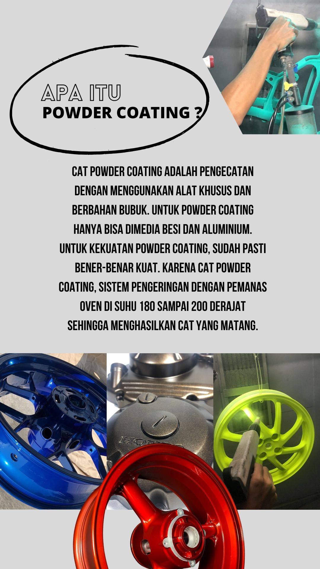 CONTOH HASIL POWDER COATING DAN VAPOR BLASTING MAP LOKASI SCM POWDER COATING FOLLOW SOSIAL MEDIA KAMI